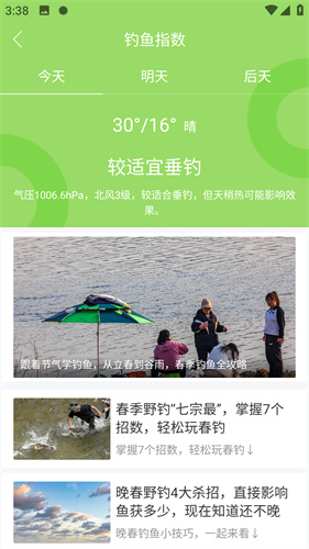 4、当然针对钓鱼佬的钓鱼指数也可以使用,通过当前天气的分析出门钓鱼吧。