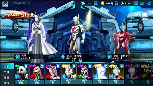 欧布奥特曼:游戏中唯一一个可以操控形态变化的角色,但是获取难度非常高,入手虽然简单,但是想让他升星就很困难了,需要每天参与欧布专属副本才可以。