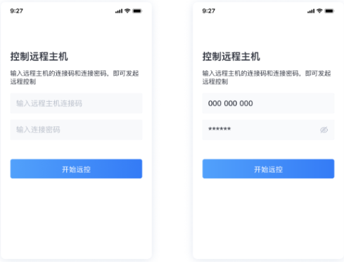 进入远程连接页面,输入电脑的远程连接码和连接密码,输入之后,点击开始远控,就能远程成功。