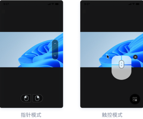我们提供了两种操控模式,指针模式和触控模式。