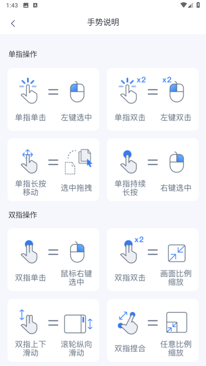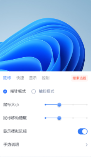 指针模式:通过用手指滑动屏幕操控鼠标,支持多样手势操作。