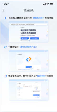 1、首先需要添加主机电脑,需要现在windows主机设备上安装好pc端的爱思远控。