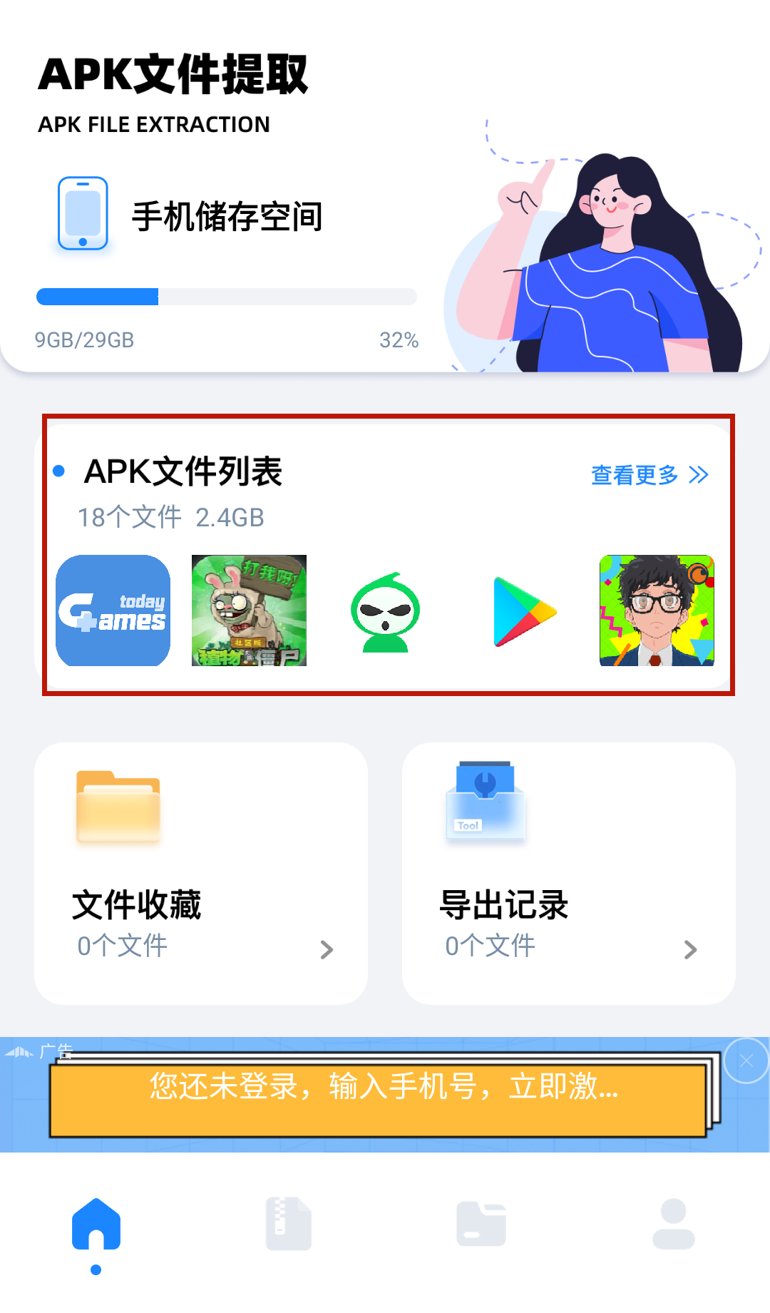 1、用户进入软件后可以看到当前手机的apk使用情况。