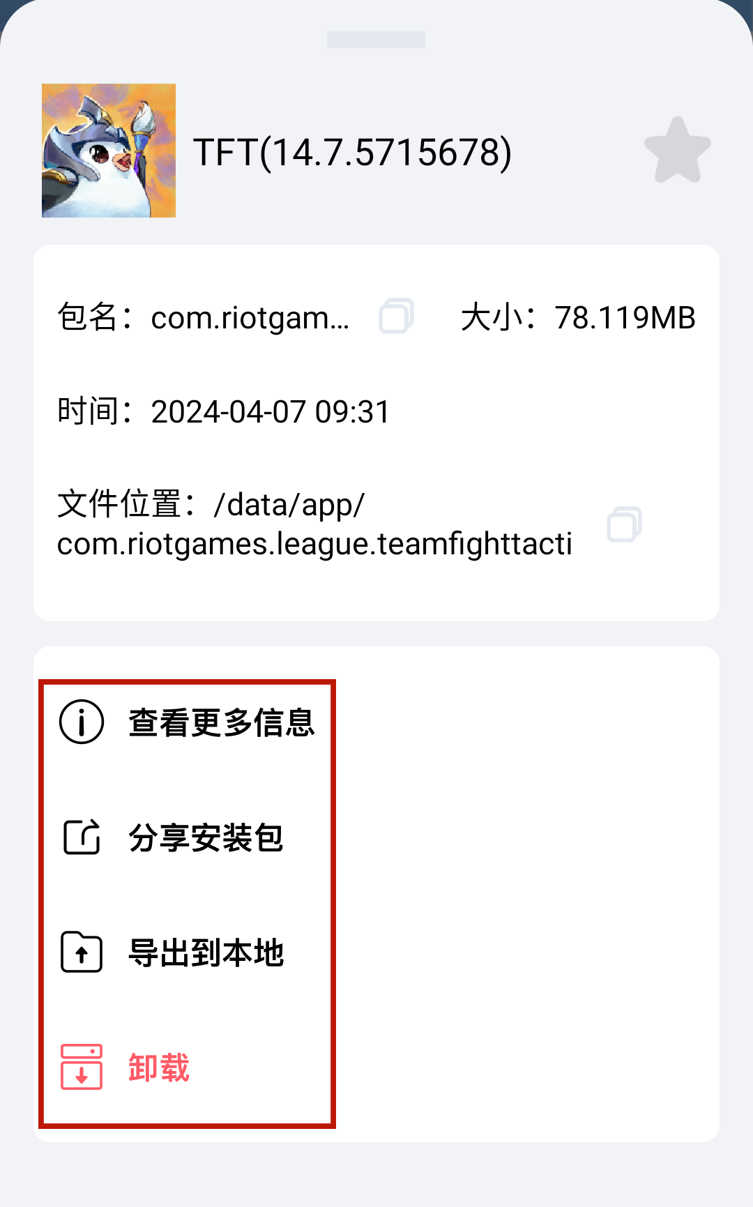 3、进入到应用详细列表中可以进行提取、卸载、更改等功能。