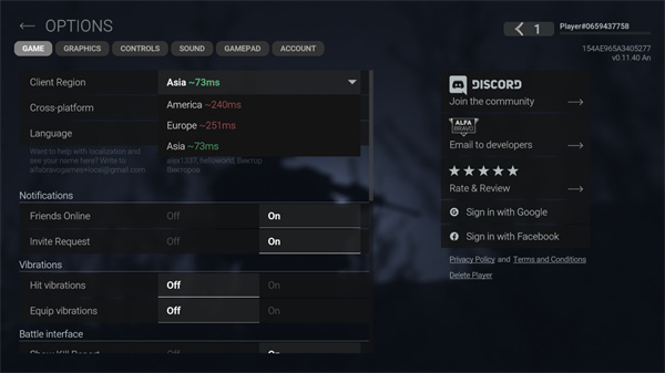 2、在设置按钮“OPTIONS”中,设定当前的游戏服务器区域,建议玩家直接选择ASIA亚服即可。