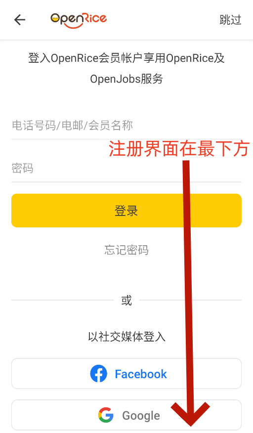 1、用户在登录界面可以往下划至最下方,找到注册按钮。