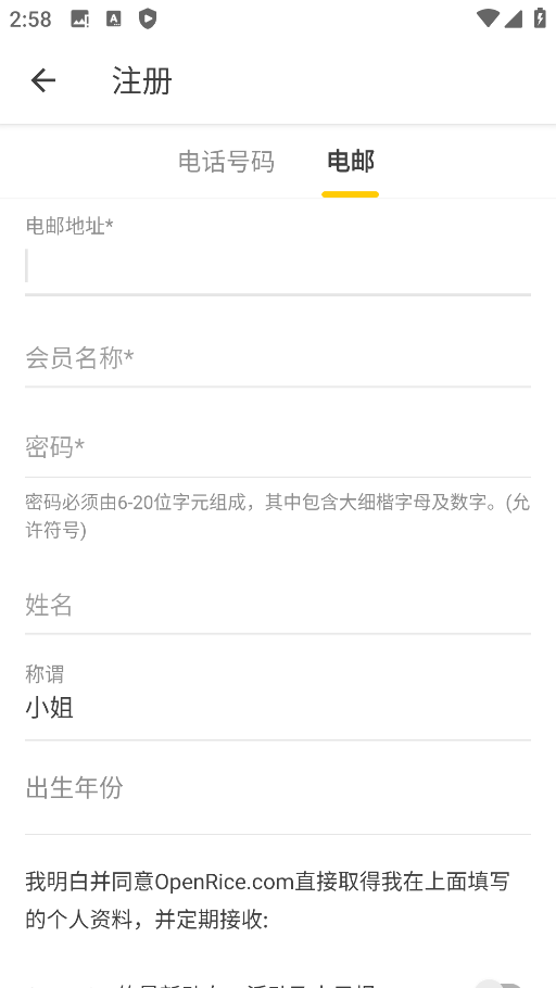 2、在注册页面根据提示输入相关信息即可完成注册,小编推荐使用邮件的方式完成注册。