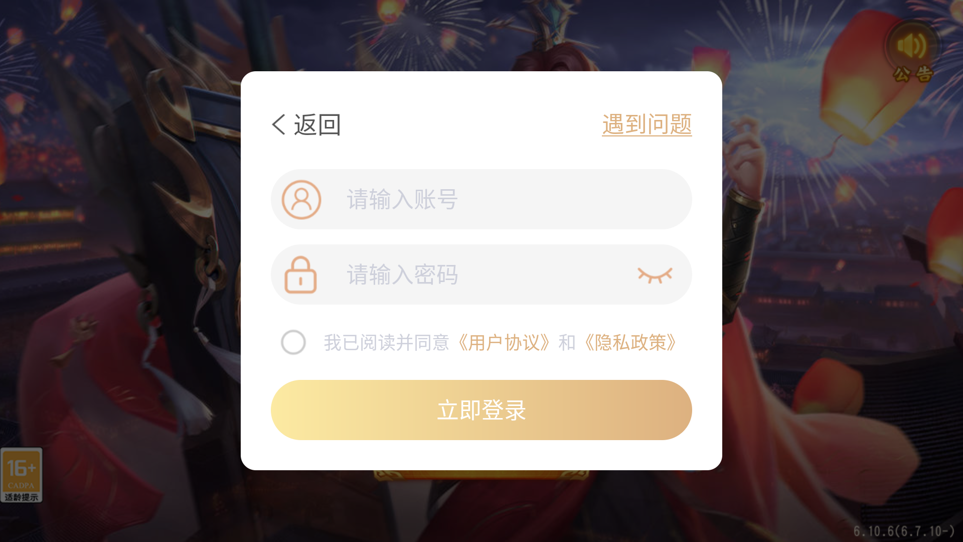 2、玩家进入游戏后使用6kw账号进行登录即可。
