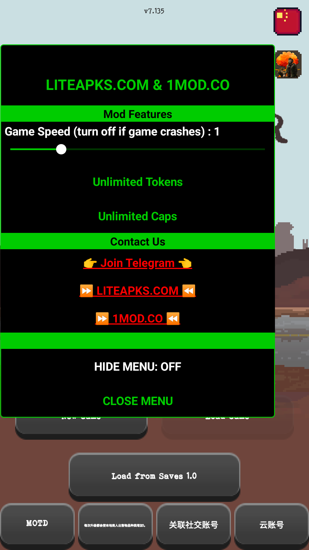 游戏内嵌了MOD菜单功能,玩家可以自由的开启如下功能: