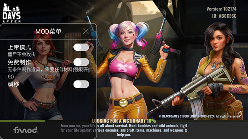 几天后是一款发生在僵尸世界的生存类冒险手游,玩家将从上帝视角下控制角色在危险的僵尸国度中生存,从0装备开始不断消灭僵尸来收集散落在四周的资源,快速的进行收纳来增加角色的生存几率,非常完整的生存玩法考验玩家对于物资的收集与使用。全新的内置菜单版本中额外增加了强力功能可以使用,让玩家能够轻松地完成收集并获取对应的资源,自由的升级当前科技建造出更多实用的建筑物增加生存几率,跟随主线的不断推进来收复更多遗失的城市成为真正的英雄。