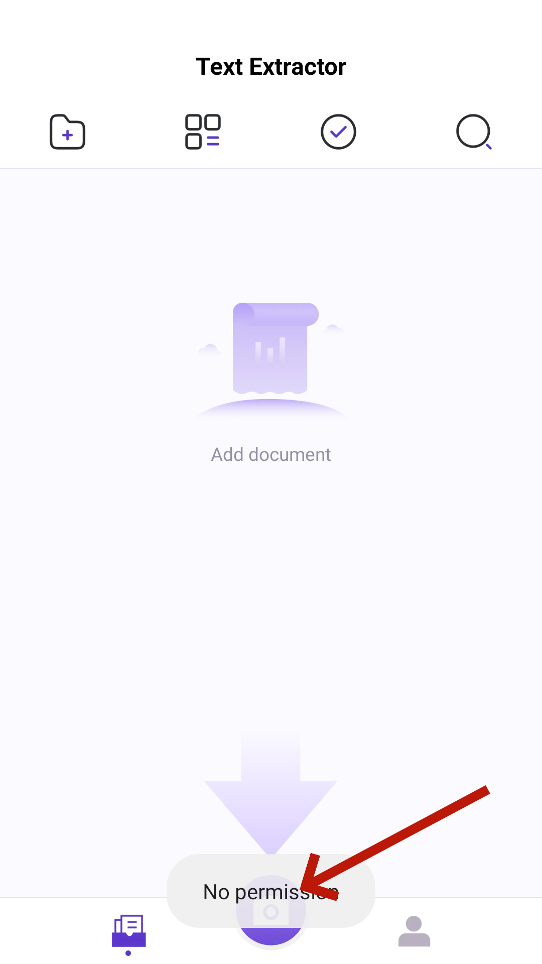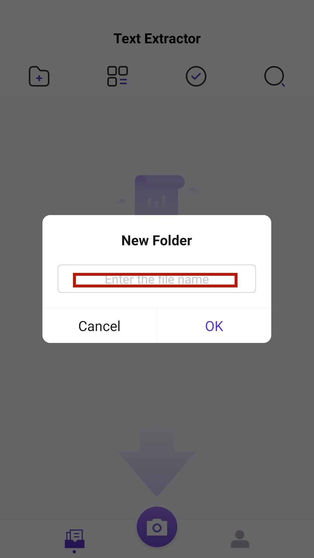 3、完成后即可点击下方照相机按钮,将想要的文件中的文字识别出来吧。
