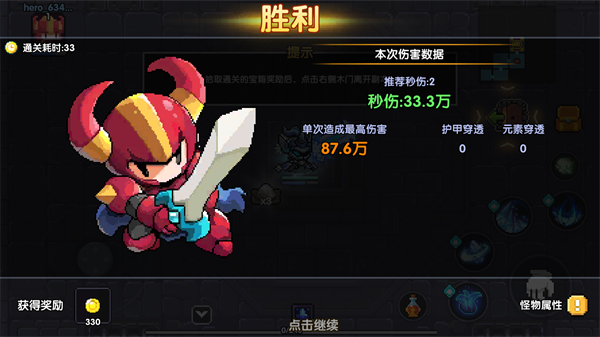 3、在完成通关后即可清晰的看到本次伤害分布与通关奖励。