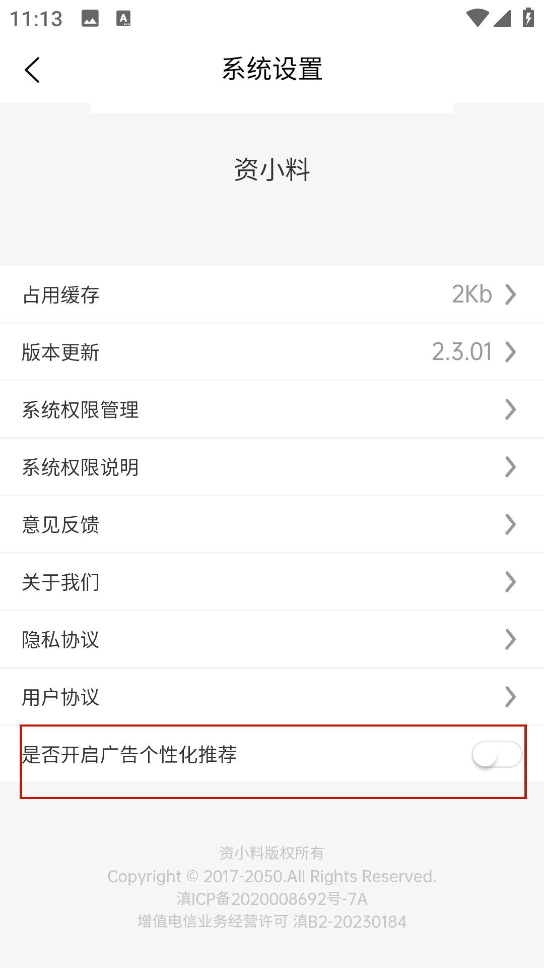 2、在系统设置中向下翻阅可以看到广告相关选项,直接关闭即可。