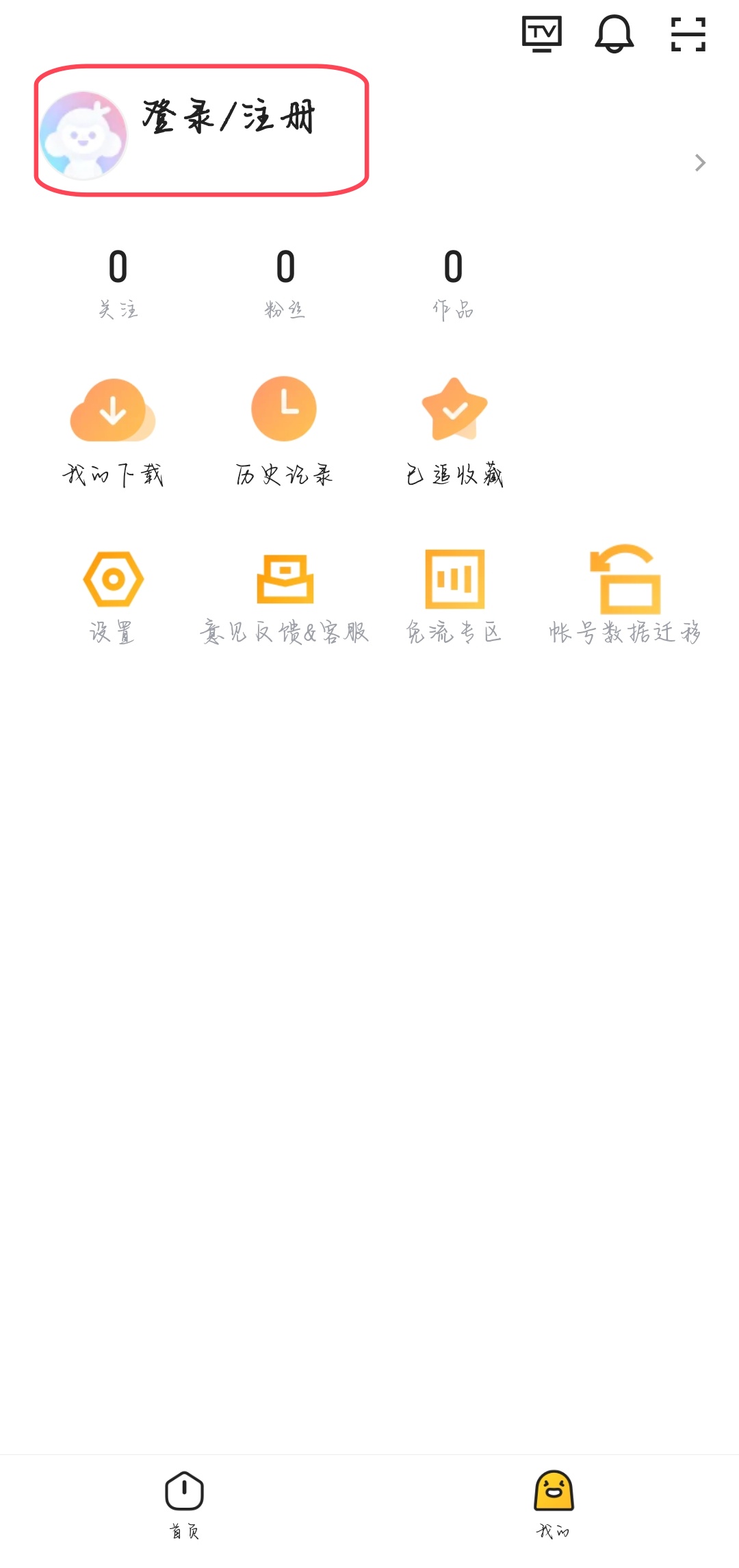 2、进入之后,点击登录/注册