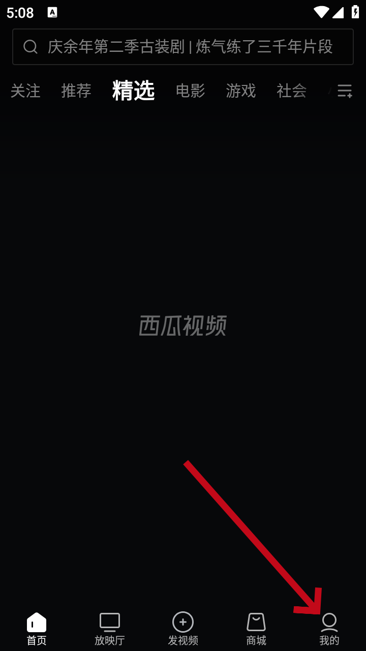 1、打开西瓜视频之后进入首页,点击“我的”