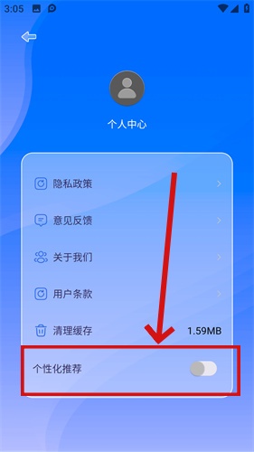2、随后在个人中心下方找到个性化推荐按钮,点击即可关闭广告服务。