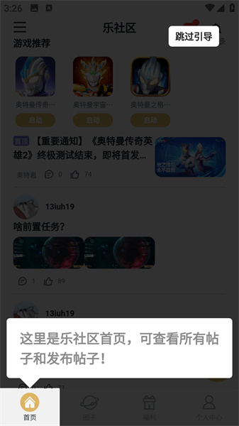 1、在首页中可以查看其它玩家的帖子内容,或点击+来自行发帖进行交流。