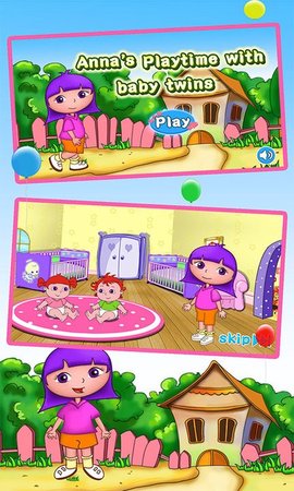 1、安娜照顾她的双胞胎宝宝是一个启蒙教育软件,专门为2、3、4和5岁的学龄前儿童设计