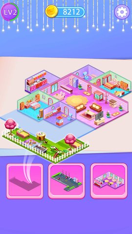 2、设计、装修、解锁新房间,各种房间等着你来装修。