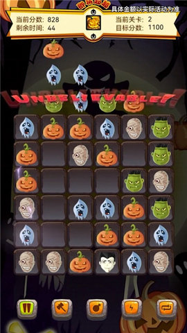 2、本游戏采用万圣节设计的游戏画面和游戏背景。