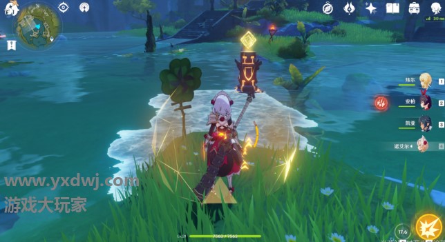 然后用凯亚E技能铺出来冰路,最后使用女仆过去E解锁柱子。