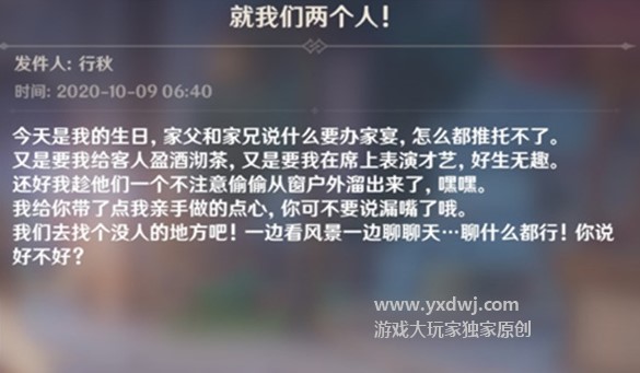 在角色过生日的时候你能够收到一封寄给你的信,里面有一些奖励还有角色的特殊料理。