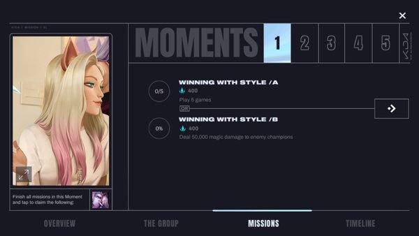 活动是限时任务,分五期推出,第一期任务做完给头像,最后奖励kda自选英雄法球。