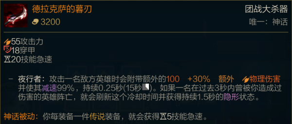 同时,暮刃的神话被动效果在神装时(4件传说装备)还可以给我们提供20的额外技能急速,简直绝配。