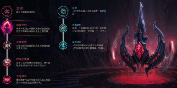 主系符文有两个选择,收割/粮头(当然电刑也可以)黑暗收割比较契台稻草人团战收割机的定位,如果想走爆发路线可以换成电刑,电刑在指向性爆发上更强。