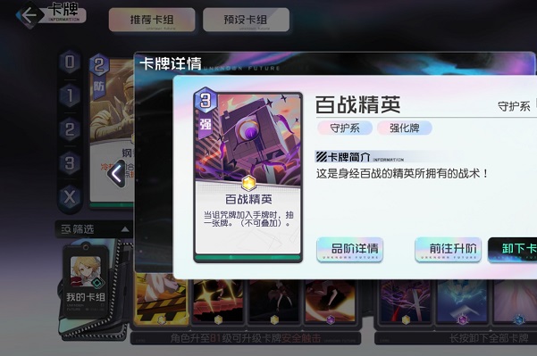 然后中间看情况使用洛维救赎把不能用的牌刷走救急,绿未来的牌以强化和湮灭为主,也是为了压缩牌组。