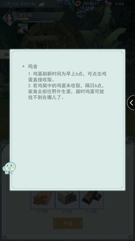 鸡舍:每天领鸡蛋,1级可以领1个,升级以后可以领更多,但升级鸡舍需要的建筑材料比较多,暂时升不了。