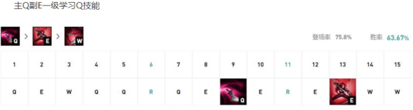 前期可凭借Q技能造成伤害并消耗敌人,等级到达三级后就可以使用连招上前换血,Q技能先手然后开W留下飞镖,使用E技能快速贴脸造成输出,打一套消耗后再利用E重新拉开距离,六级有大招更容易造成击杀。中后期装备具备后加上征服者的效果续航能力超强,团战进场可疯狂输出,同时要注意中娅的使用避免被集中火力。
