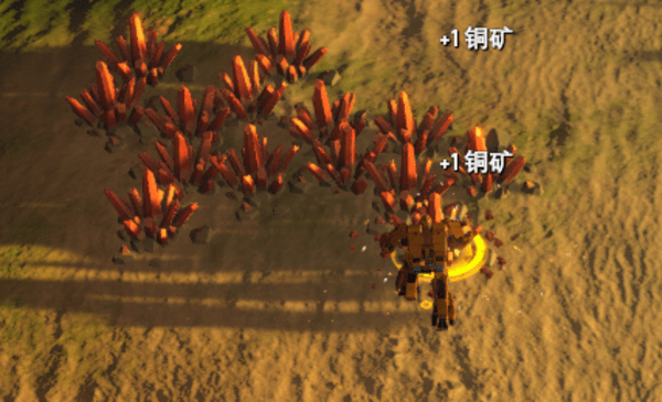 如图,这就是铜矿的样子,外形和铁矿很像,颜色是和机甲一样的铜黄色。