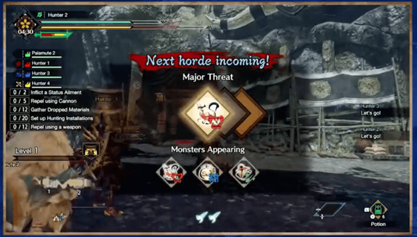 如果正门被打破,任务就会失败,要完成任务,猎人需要击退怪物群、首领有时甚至要打败霸主怪物,来彻底守卫炎火村。