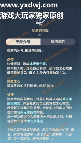每一层冷酷之心会转化为一柄冰涡之剑,对附近的敌人造成冰元素伤害。