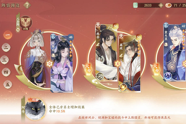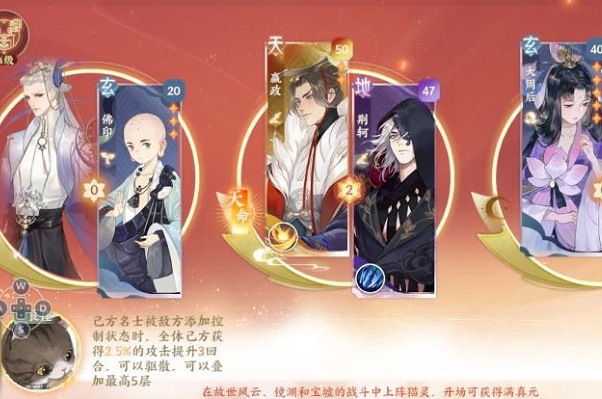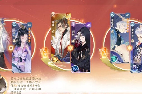 忘川风华录游戏中,不少小伙伴都培养的是嬴政,讨论热烈的也是嬴政的阵容搭配,以及嬴政隐藏天命,还有灵器搭配,今天小编就在这里给大家分享一下自己的心得,其实嬴政隐藏天命就是韩非,可以在家园系统种邀请,培养好感度。关于嬴政阵容,下面分享了几个,可以作为参考,毕竟每个玩家的资源都不一样。