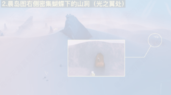 2、晨岛图右侧密集蝴蝶下的山洞(光之翼处)