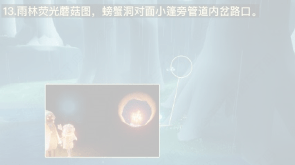 13、雨林荧光蘑菇图,螃蟹洞对面小蓬旁管道内岔路口