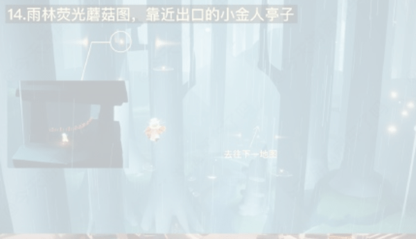 14、雨林荧光蘑菇图,靠近出口的小金人亭子