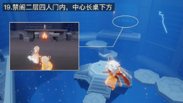 19、禁阁二层四人门内,中心长桌下方