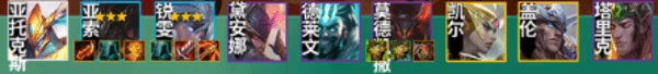 3-2的核心是凑三丧尸连胜,三丧尸是中期最强的搭配,没有4征服都无所谓,2斗2黎明3征服3丧尸是很强的,正好每个人吃一个装备,塞恩出山即无敌,整个3阶段的连胜妥妥的,关键是这个组合能4阶段稳血,虽然会掉血但是不多,能慢慢等6征服,而不需要花太多钱大D。