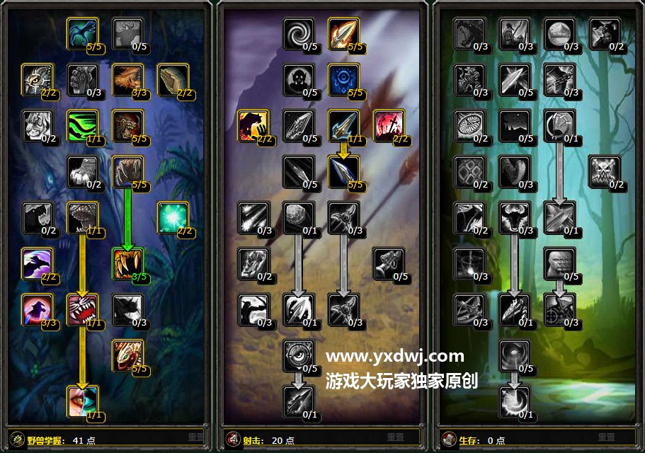 生存这一系我们不点了,点数投入在兽王还有射击上面。