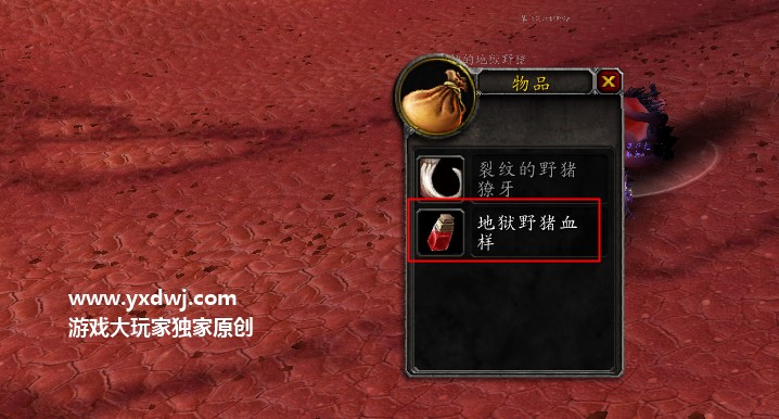 地狱野猪血样是恶魔的玷污这个任务里面需要收集的一个材料。