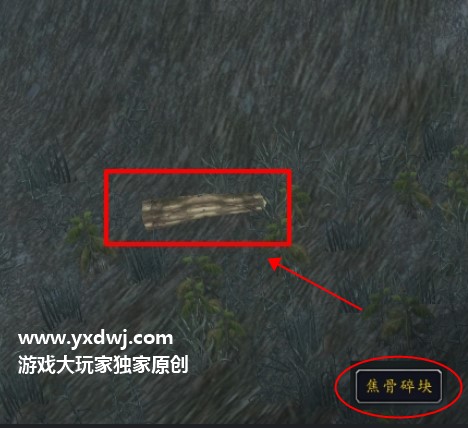 到了之后我们在山脚附近就可以找到下图所示的一块骨片。