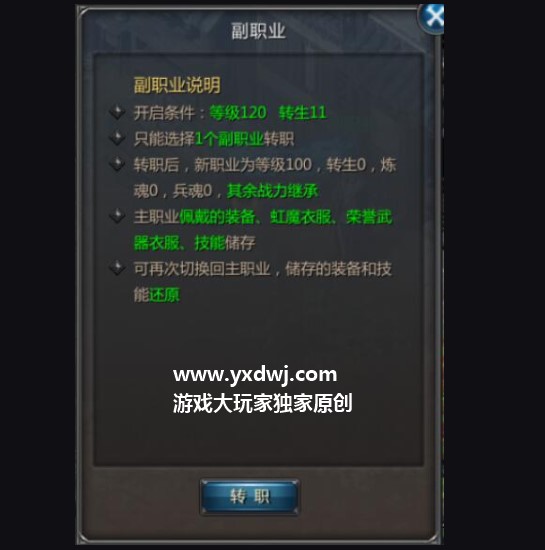 这个游戏一开始开服的时候不能够选择转职,只能够转生。