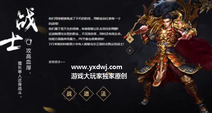物理攻击职业,高伤害,高生命值。技巧简单暴力,PK节奏快感!1V1单挑很少有人能完全战胜战士!