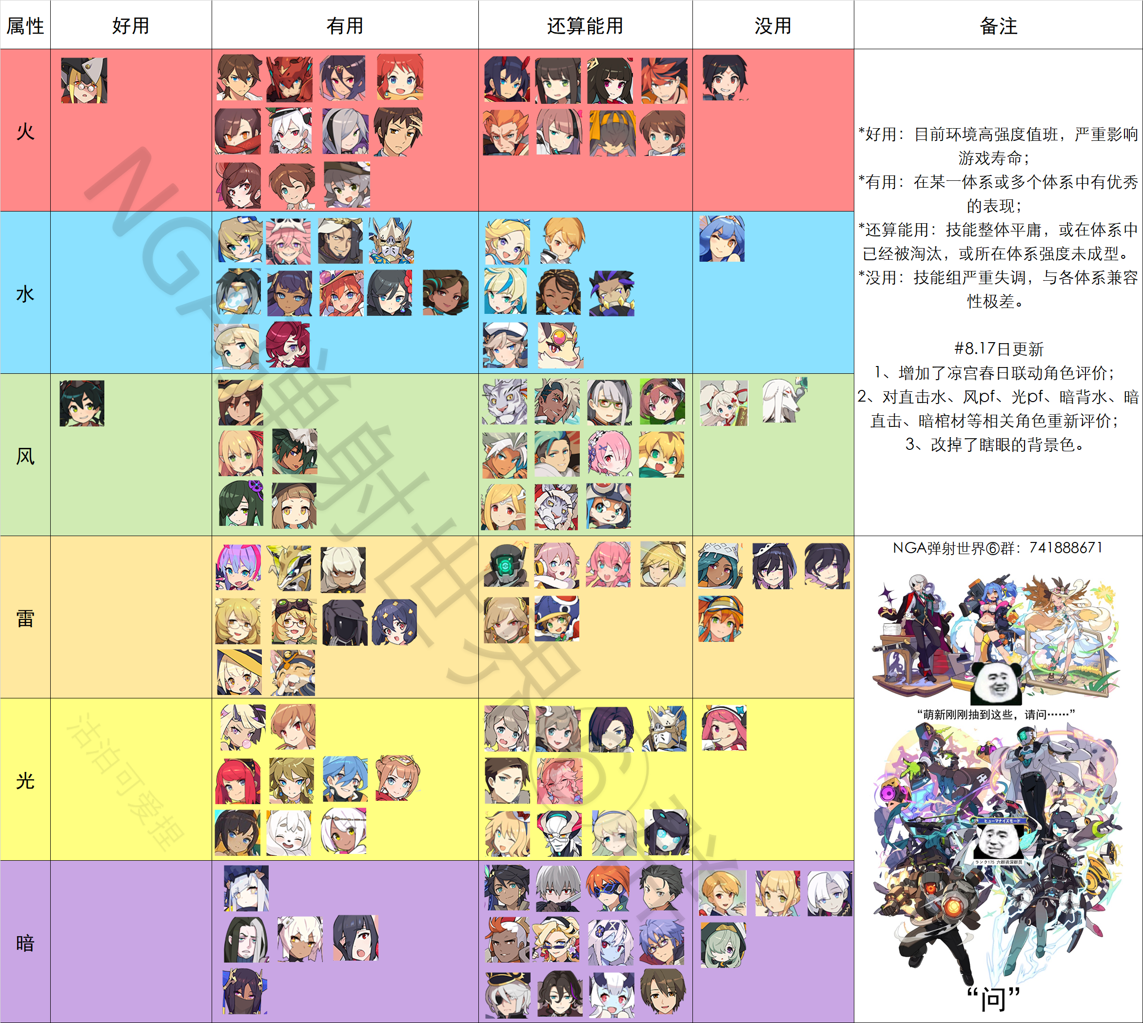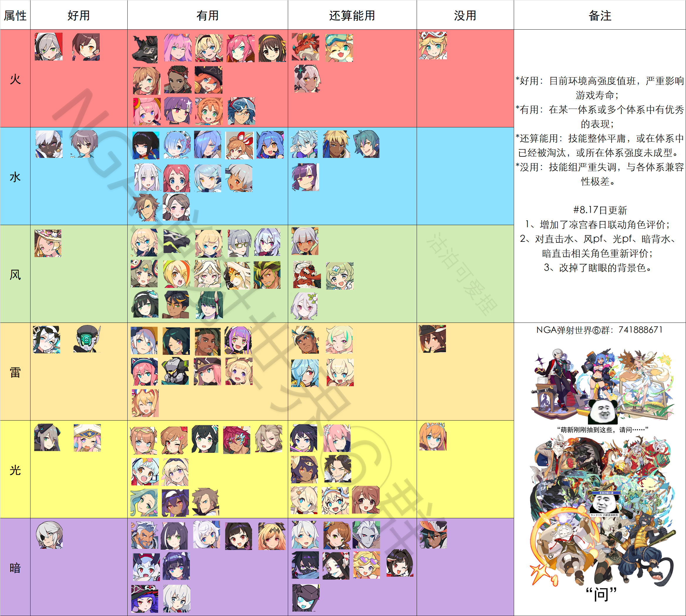 这是日服目前最新的节奏榜,国服的五星建议拿风属性的风奶,暗属性的暗老头(又称暗gay),以及光属性的光王子,比较保值,可以用很久