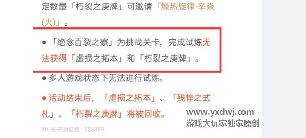 「绝念百裂之寮」为挑战关卡,完成试炼无法获得「虚损之拓本」和「朽裂之庚牌」