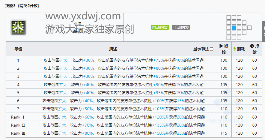 三技能圣域最强法术减伤,超大范围法抗加成以及法术闪避,对抗法伤终极武器