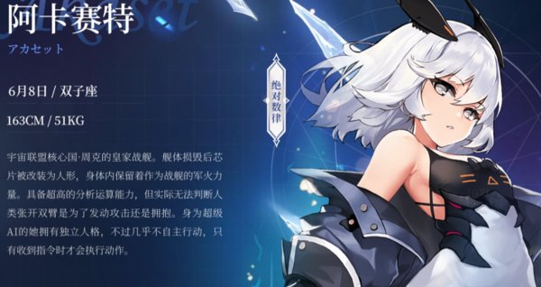 宇宙联盟核心国·周克的皇家战舰。舰体损毁后芯片被改装为人形,身体内保留着作为战舰的军火力量。具备超高的分析运算能力,但实际无法判断人类张开双臂是为了发动攻击还是拥抱。身为超级AI的她拥有独立人格,不过几乎不自主行动,只有收到指令时才会执行动作。